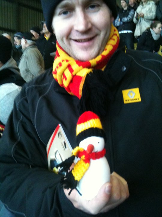 I left the game on an enormous high. We have had great games this season, and this was by far our best home performance. Of course Malky and the boys have been working hard off the pitch to develop the on pitch product, but we do love a lucky charm on From The Rookery End. So what has been behind these amazing performances. Is it the fact that Millwall, QPR and Cardiff all have blue in their kit? OR is it down to Jason’s Lucky Watford Snowman – Xavier. Named after the whites man to ever play for Watford Xavier Gravelaine. Xavier has now watched the QPR game on the telly and Cardiff was his first game at Vicarage Road. He seems to have a magical ability to get a good performance out of the Watford players!