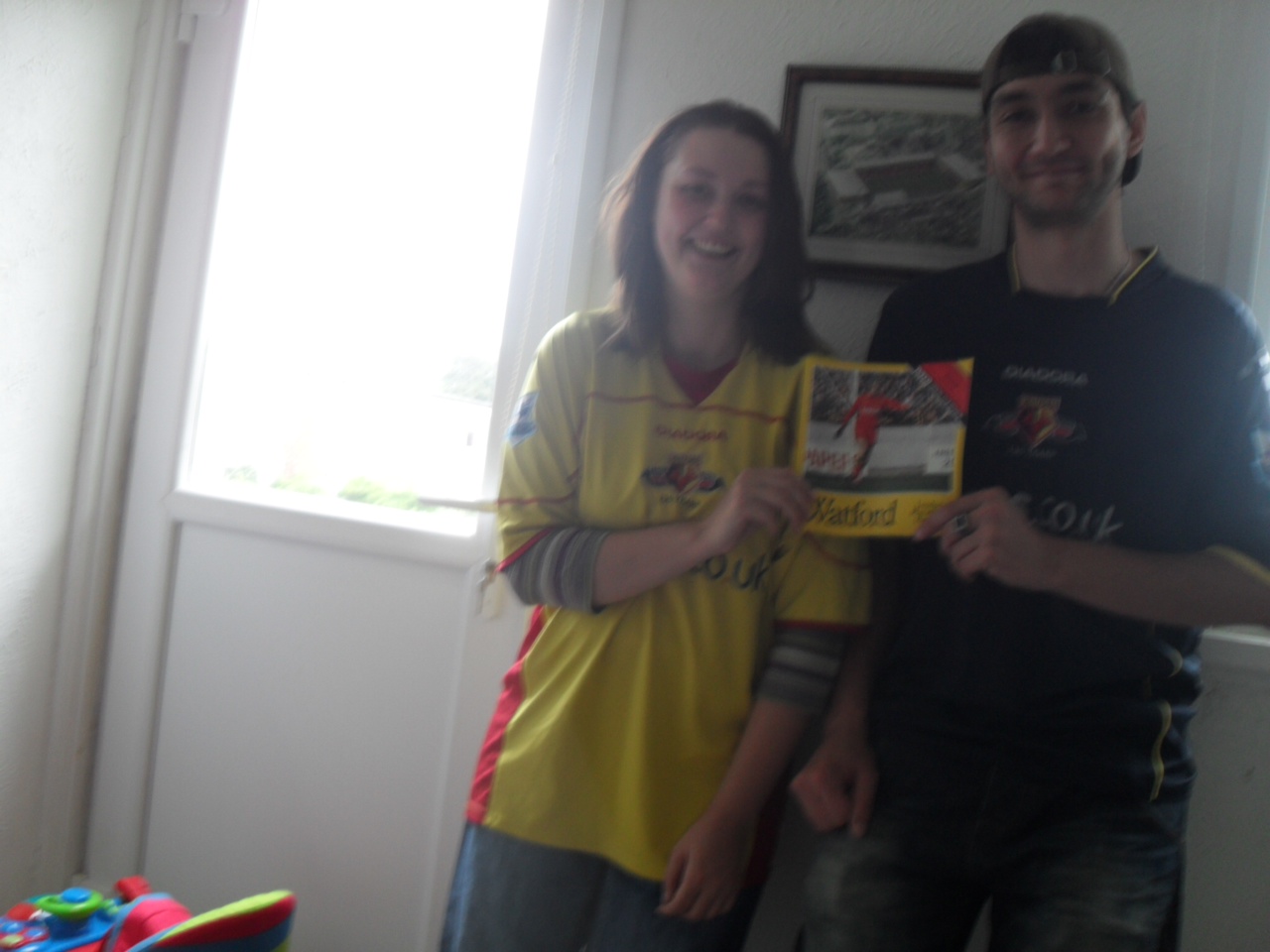 What a clash of events – the magnificent moment of a baby being born and the jubilation of fans as a goal goes in. I asked Anthony what time Zoe was born, 4:30pm. With a bit of research on the Watford Observer website found out that it was a Luther Blissett penalty that occurred as Zoe was born. Here’s Zoe and Anthony with the programme.