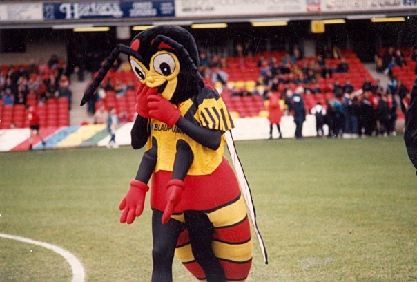 Harry first appeared “in real life” in 1995 and legend has it that the original Harry the Hornet costume that Nick wants to put in the list was changed because the man who first played Harry pleaded “squatters rights” when he had a fall out with the club. Apparently he stole the head. We never had a Harry the Hornet when I was a kid and in some ways I very jealous of the young supporters who get to see him today. I know in my very early games my Dad would have liked him to keep me distracted when my mind wondered away from the on-pitch action and I’d run out of Panda Pop and eaten my Mars Bar.