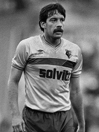 I’m opting for a 4-3-3 formation and in the midfield I am going to start with two gents of similar stature and hairstyle! Les Taylor, to this day, is the only man to captain a Watford side at the F.A.Cup final. Like you need reminding! The other curly haired midfielder to grace my XI with his hairy slug is Ray Train. I did consider Kevin Richardson for the midfield spot, but he was too wispy for my liking. Having said that, my third choice in midfield is Micah Hyde. He never wore anything full on under his nose, but this was the late nineties and his pencil ‘tache was a thing of style.